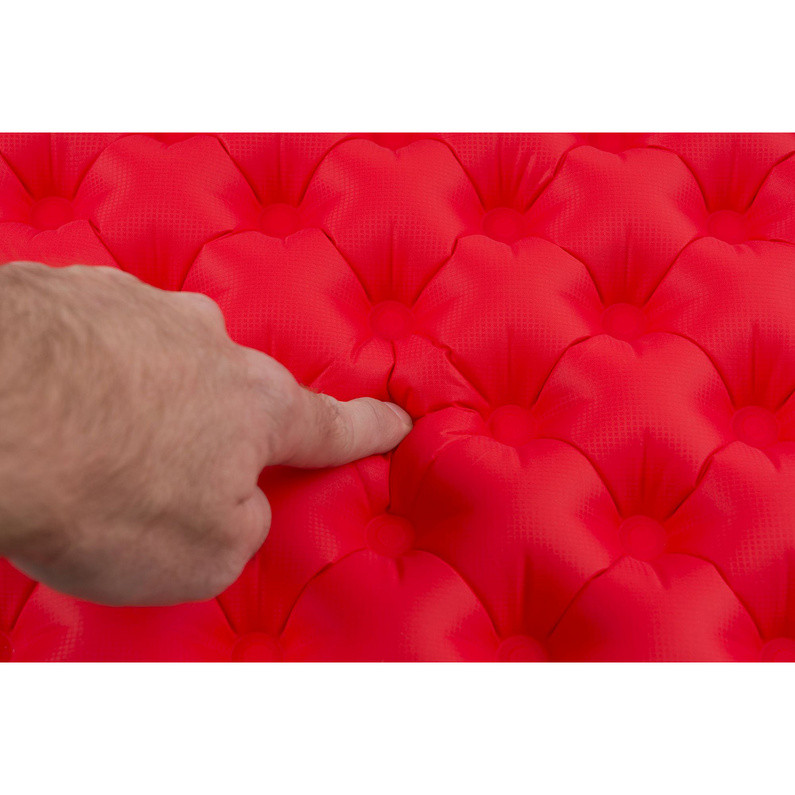Alustassa on kaksinkertainen Exkin Platinum- ja Thermolite-eristys. Korkean tiheyden omaavat ilmasolut voivat olla erilliset toisistaan, jolloin voit säätää mukavuutta parhaalla mahdollisella tavalla. Puhalla yläkerros täyteen saavuttaaksesi henkilökohtaisen mukavuuden samalla kun luot paineenkestävän alueen suojatakseen alustaa haastavissa olosuhteissa. Erilliset kammioiset sallivat alustan toimimisen vaikka yksi kerros olisi puhjennut. Air Sprung Cells muotoutuvat kehon muotojen mukaan ja jakavat paineen tasaisemmin alustalla, mikä takaa mukavamman yöunen. Monitoiminen venttiili mahdollistaa nopean täyttämisen, tyhjentämisen ja helpon säätämisen henkilökohtaisen mukavuuden mukaan. Ultra-Fresh antimikrobinen käsittely estää homeen kasvun alustassa. Kaksikerroksinen rakenne jakaa painoa ja muotoa useille soluille, mikä tekee alustasta herkemmän. Exkin Platinum on kevyt ja hiljainen metallipinnoitettu kangas, joka heijastaa säteilylämpöä takaisin. Thermolite-eristys täyttää ilmasolut estääkseen lämmön siirtymisen lämpimästä kehosta kylmään maahan. Sisältää korjaussarjan helppoa korjaamista varten ja pumppusäkin täyttämistä varten. Sisältää myös lukitusjärjestelmän, jolla voit kiinnittää Sea To Summitin tyynyjä alustaan. Materiaali: 30/40D Nailon.