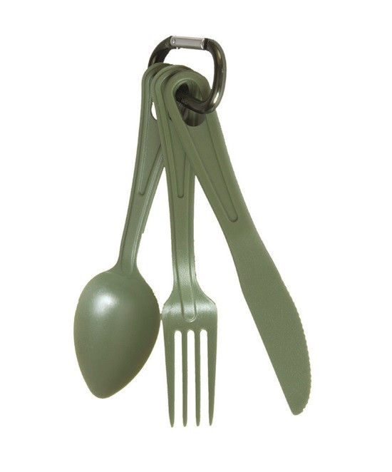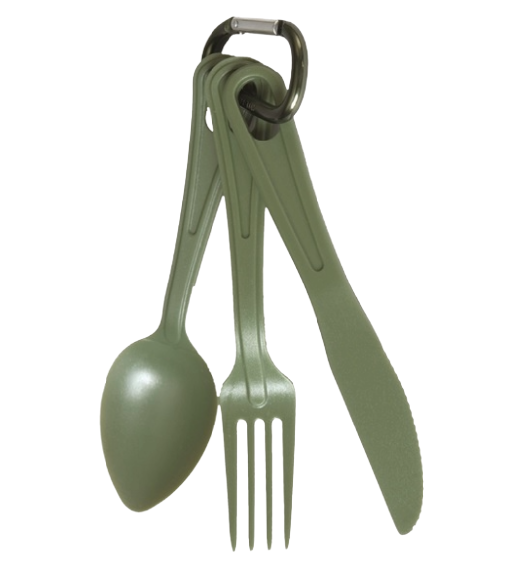 Kevyt ruokailuvälinesetti jossa samassa paketissa; lusikka, haarukka ja veitsi. Setin aterimet ovat valmistettu kestävästä Lexan Polycarbonaatista. Kuljetuksen aikana setti pysyy yhtenä pakettina mukana tulevassa palomiehen haassa, jonka avulla sen voi myös ripustaa esim takin tai repun lenkkiin.