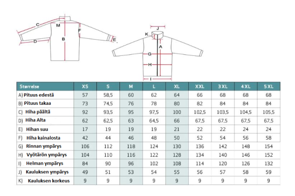 * Laaja kokovalikoima Pohjoismaisella mitoituksella koot: S- 5XL