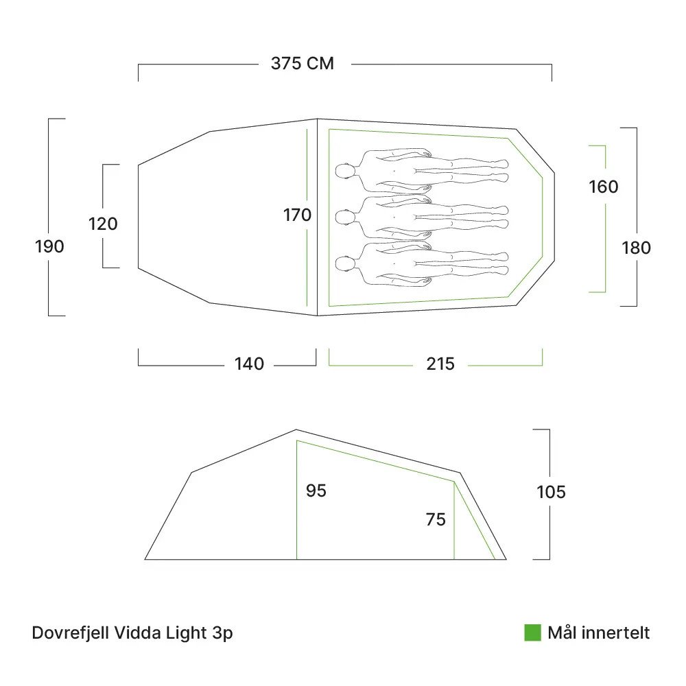Vidda Light 3p on kompakti tunneliteltta, jossa on tilaa kolmelle hengelle.