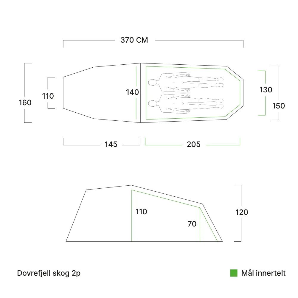Dovrefjell Skog 2p on kolmen vuodenajan tunneliteltta kahdelle hengelle.