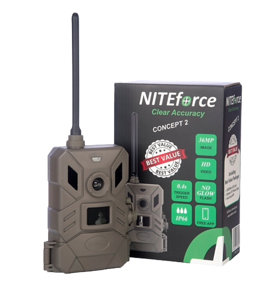 NITEforce Concept 2 etäohjattava riistakamera huimalla 36MP resoluutiolla sekä videon lähetyksellä (10s / HD). Laadukas kuvanlaatu tallentuu ilmaiseen APP sovellukseen joka on suomenkielinen.