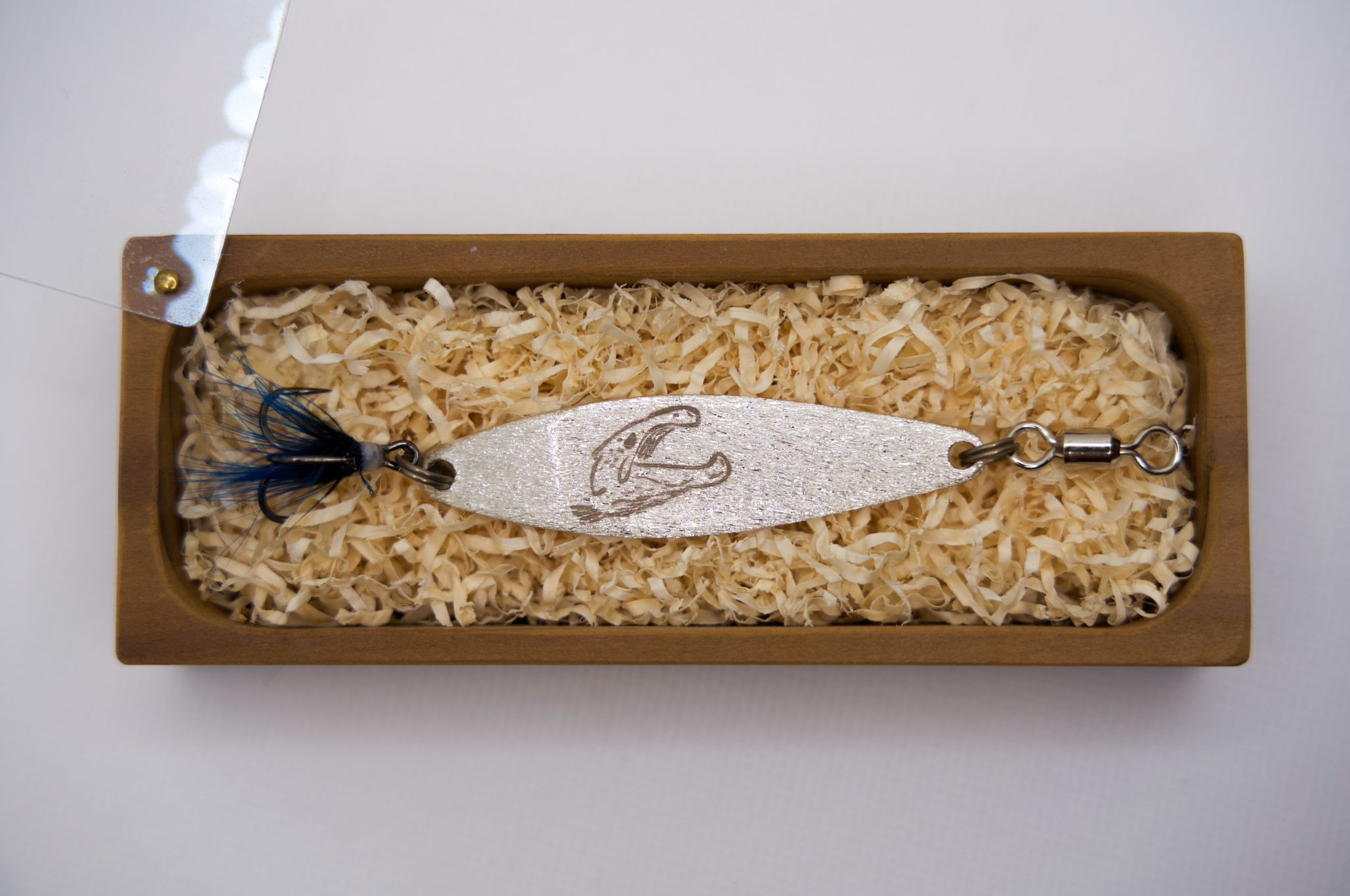 Veijoviehe silver midi merkkipäivälahjaksi, valmistujaislahjaksi? Tuote on hopeasta valmistettu ja leimattu, käsinsidotulla perhokoukulla varustettu lusikkauistin.